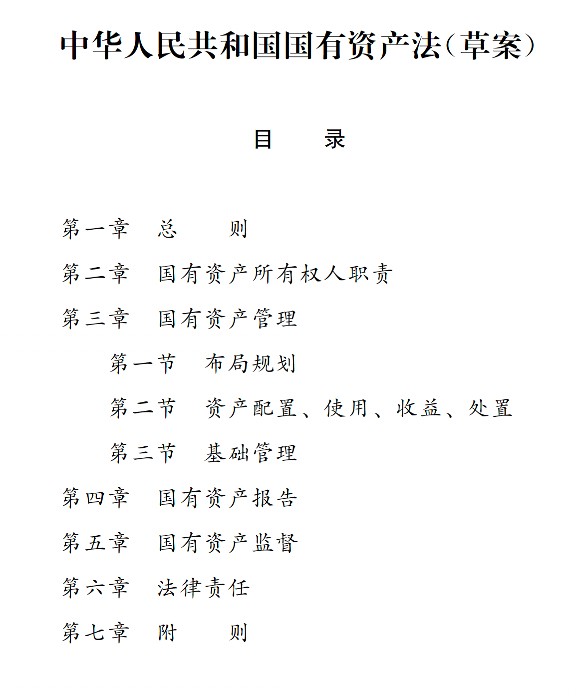 十四届全国人大常委会第十九次会议对《中华人民共和国国有资产法(草案)》进行了审议。现将《中华人民共和国国有资产法(草案)》公布,社会公众可以直接登录中国人大网(www.npc.gov.cn)或国家法律法规数据库(flk.npc.gov.cn)提出意见,也可以将意见寄送全国人大常委会法制工作委员会(北京市西城区前门西大街1号,邮编:100805。信封上请注明国有资产法草案征求意见)。征求意见期限为30日。